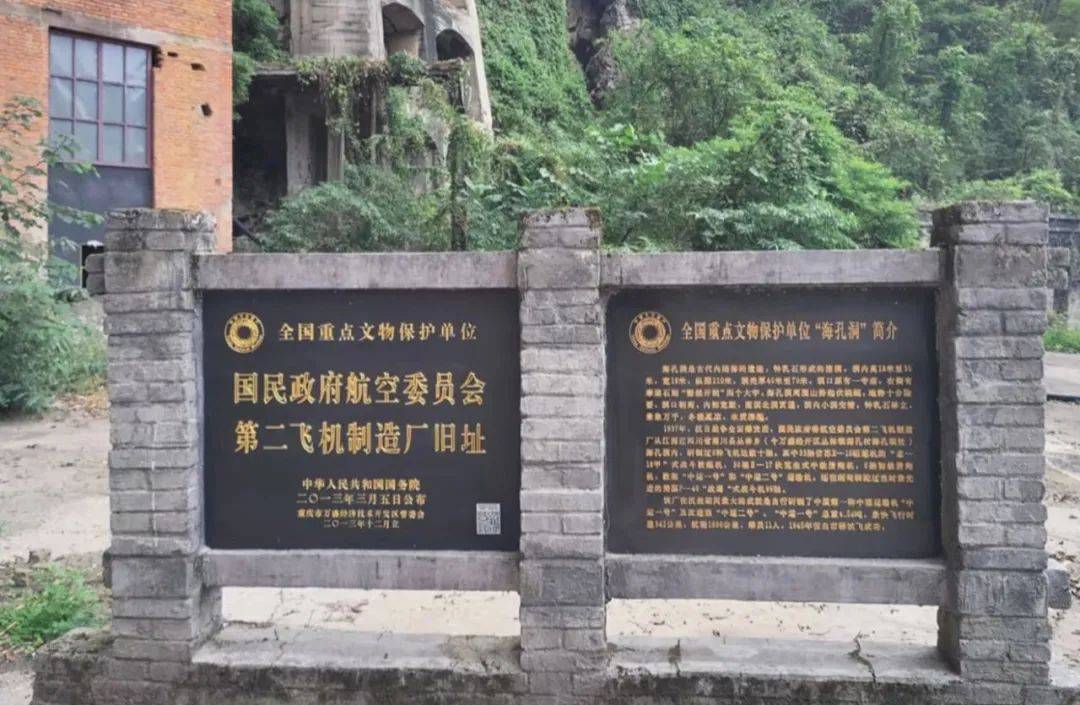1938年初,为躲避日机轰炸,国民政府决定将位于江西南昌的中意南昌飞机制造厂内迁。经过周密勘查,该飞机厂迁至今万盛丛林镇海孔洞,名为国民政府航空委员会第二飞机制造厂,简称第二飞机制造厂,又名海孔飞机厂。当时,海孔飞机厂聚集了一批全国航空技术精英,先后生产教练机、驱逐机、运输机数十架,还设计制造了中国第一架军用运输机。