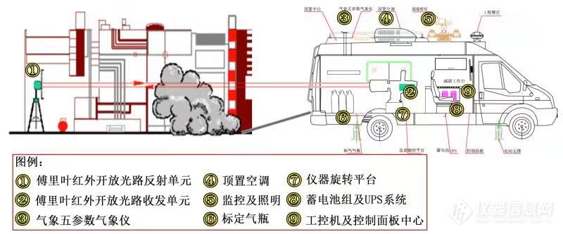 车载开放光路面源排放监测系统具备快速灵活、可以对多种污染气体排放进行非接触式、快速自动测量的优势,可以将载有主机的监测车与阵列角反射镜在较短时间内置于事故现场的两侧,快速获取事故现场的污染气体排放情况